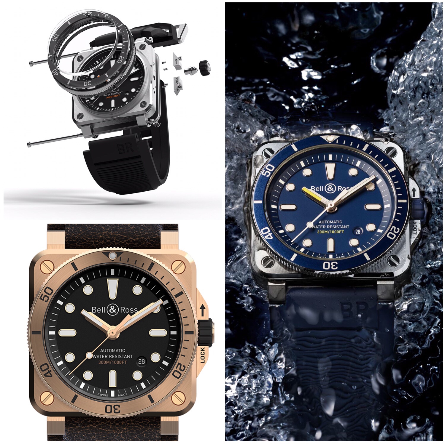 20 ans plus tard (et la BR 01 lancée entre-temps) la BR 03-92 Diver voit le jour, soit la première montre de plongée… carrée. Une classe folle ce cadran noir, vous ne trouvez pas ? Le succès est au rendez-vous puisque quelques mois plus tard, bref y a pas très longtemps, la collection accueille 2 nouvelles déclinaisons, l’une bleue, l’autre en bronze.