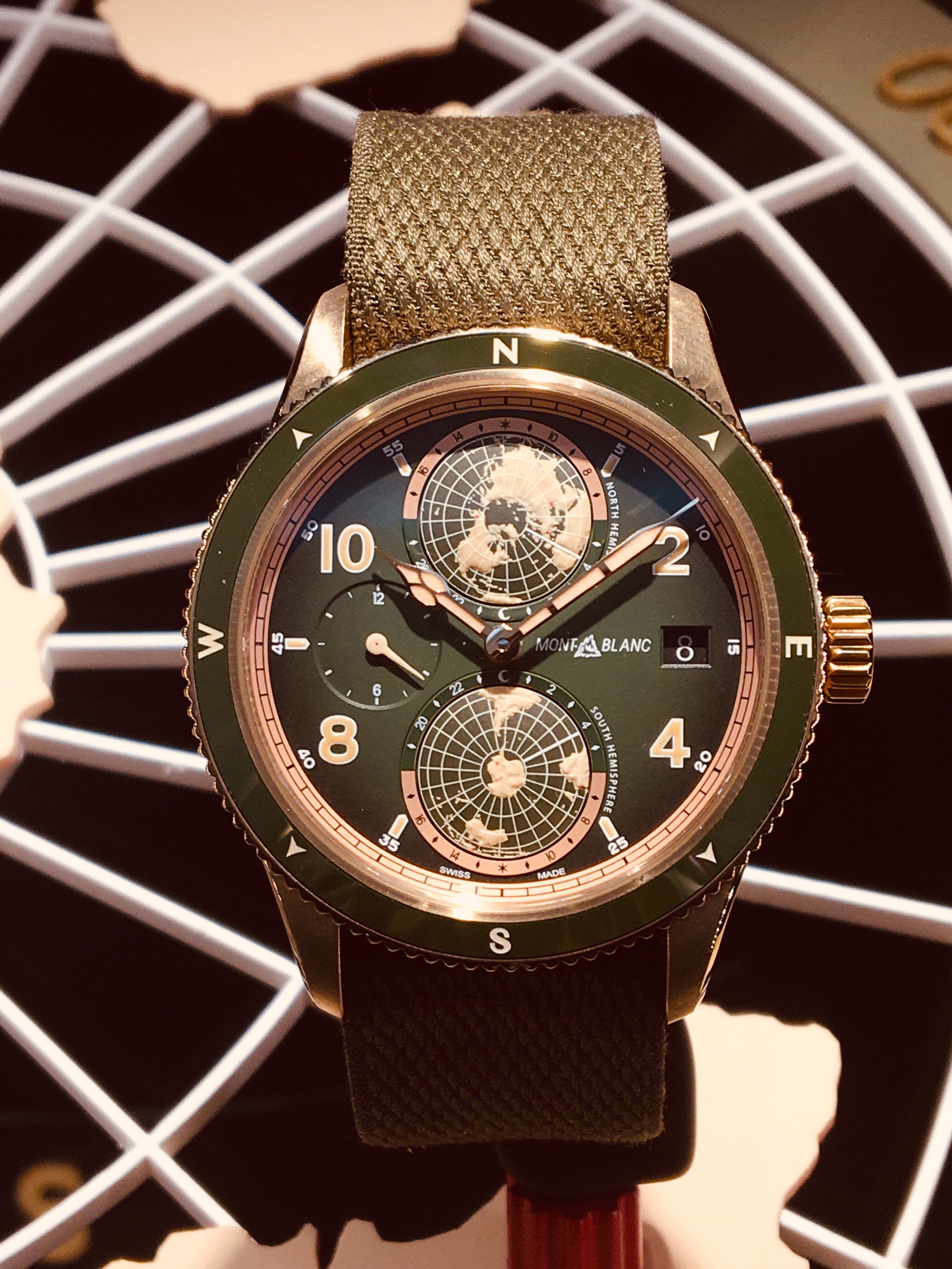 Quel est le rêve de tout alpiniste, enfin d’un ultra alpiniste ? C’est celui de gravir les 7 plus hautes montagnes sur terre, soit une par continent. C’est pour rendre hommage à ces sportifs hors norme et à l’occasion de l’anniversaire des 160 ans de Minerva que Montblanc avait lancé ce modèle Géosphère. Une montre dont la particularité est celle de représenter le globe terrestre sous la forme de 2 sphères, sur lesquelles 7 petits points rouges localisent les 7 sommets.