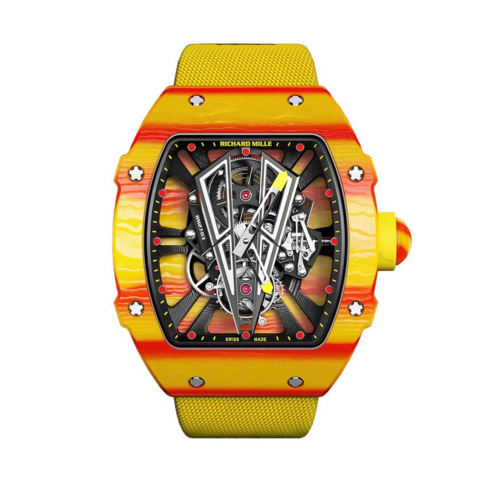C’est lui qui apparait en effet en 2013, arborant au poignet un ovni horloger, la RM 27-01, une montre dont le poids n’atteint même pas les 19 grammes !!! Mais c’est la version lancée en 2015, qui sera sans doute plus visible avec son bracelet de couleur orange. Cette montre devait une fois de plus résister à la puissance du majorquin, soit pouvoir encaisser durant plusieurs heures de nombreux g ! Celle-ci relèvera le défi d’en supporter 5.000 grâce à une boîte créée d’une seule et même pièce (voir ici)