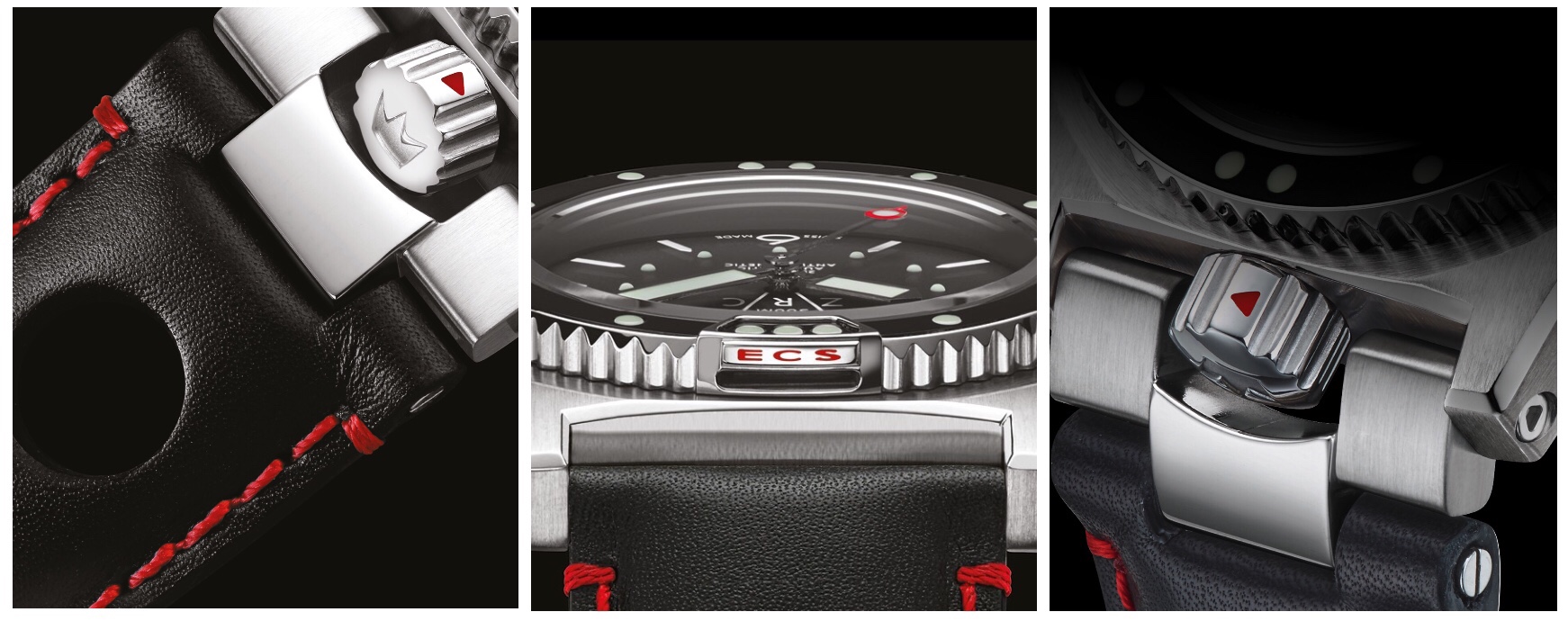 Autre originalité de cette plongeuse, la présence du système appelé « ECS » pour Easy Clean System. Lors des années d’utilisation de la montre ZRC par la Marine Nationale, les plongeurs avaient observé un problème récurrent, celui du sel qui se cristallisait entre la lunette et le boîtier, provoquant le blocage de la rotation de la lunette.