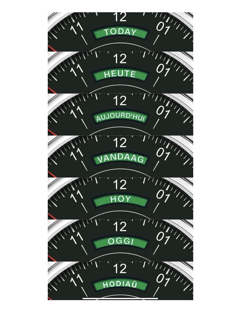 La date ! Non pardon le jour ! AUJOURD’HUI ! Today is the Day… en 7 langues qui plus est. Anglais, allemand, français, néerlandais, espagnol, italien et en espéranto… HODIAU. Car l’idée au final résume parfaitement la conception et la philosophie de la maison allemande : « rien n’est plus important que le moment présent »