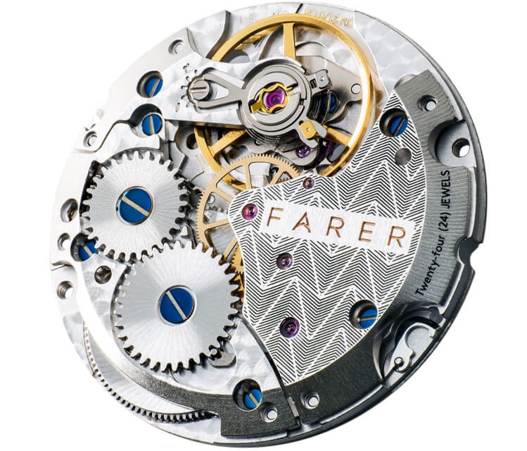 Alimentée par le mouvement modifié SELLITA SW216-1, celui-ci reconnu pour sa finesse, sa fiabilité et sa robustesse, offre une réserve de marche de 45 heures lorsque le calibre est entièrement remonté manuellement.