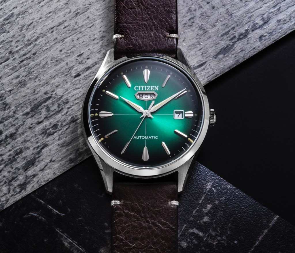 Plus sérieusement, jetons un coup d’œil à cette nouvelle Citizen C7, nouvelle puisqu’elle s’inspire du modèle Crystal Seven lancé en 1965 par la maison japonaise. Sa particularité ? Outre le fait d’offrir une montre automatique à un tarif, qui au pays du Cervin, pourrait être considéré comme mission impossible (à part chez Swatch), c’est avant tout le guichet de jour qui attire l’attention.