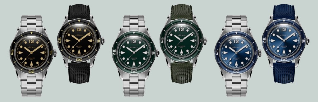 Mais revenons un instant à la genèse de la marque. Fondée à Gand par Stijn Busschaert, jeune collectionneur passionné, Méraud Watch Company est une marque horlogère indépendante dont le nom, dérivé des mots français « mer » et « émeraude », symbolise un lien avec la mer et quelque chose de précieux.